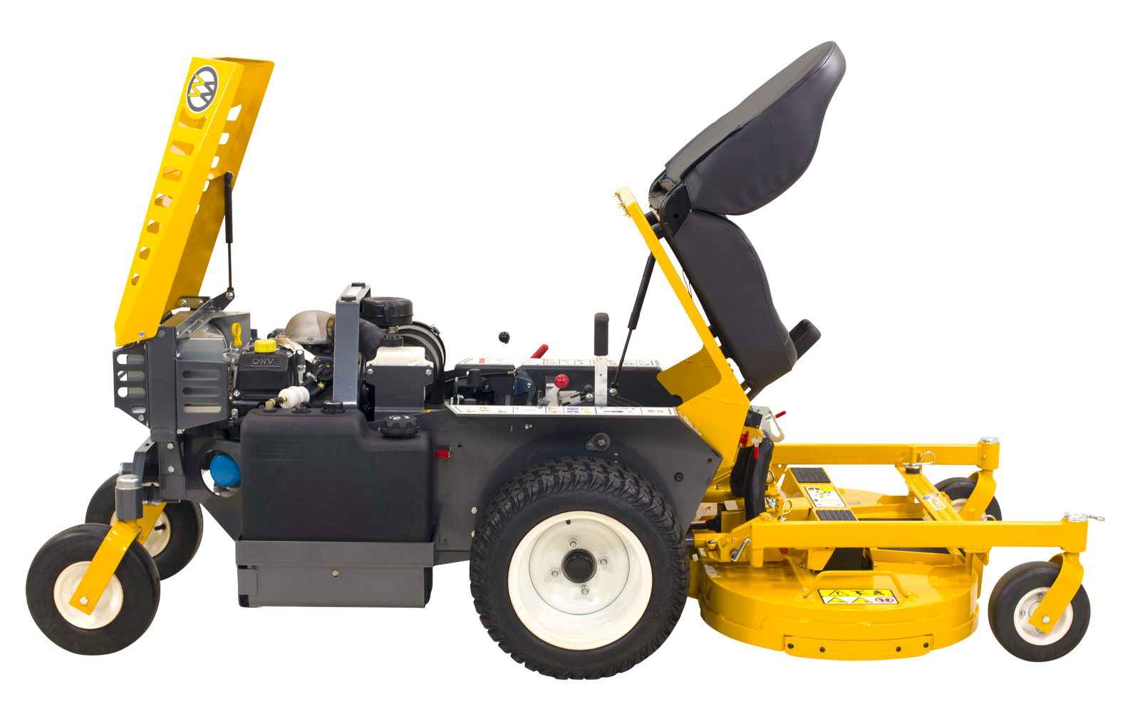 Tilt up body & deck to completely expose drive train. Makes servicing fast and simple.